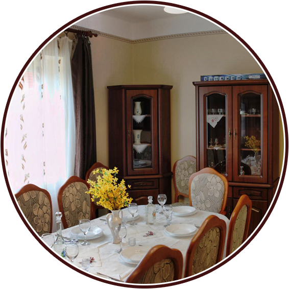 A vendégház jól felszerelt közös konyhával rendelkezik, ahol vendégeink elkészíthetik kedvenc ételeiket, amit a tágas ebédlőben, akár egyszerre 10 fő is fogyaszthat